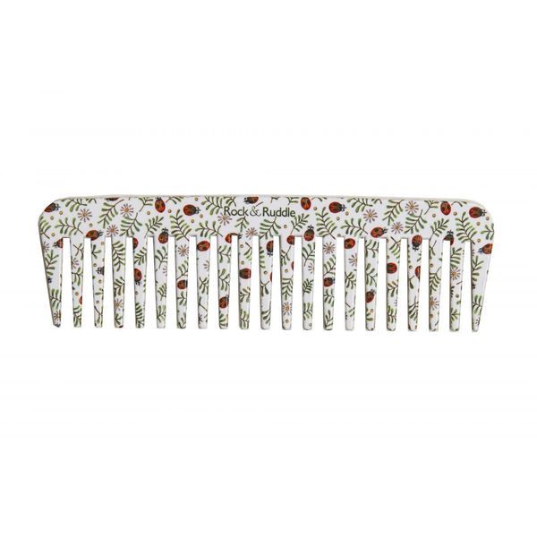 This Rock & Ruddle comb features a distinct ladybird design, adding aesthetic appeal to your grooming routine. It is specifically designed to keep hair effectively detangled while helping you style your look throughout the day.