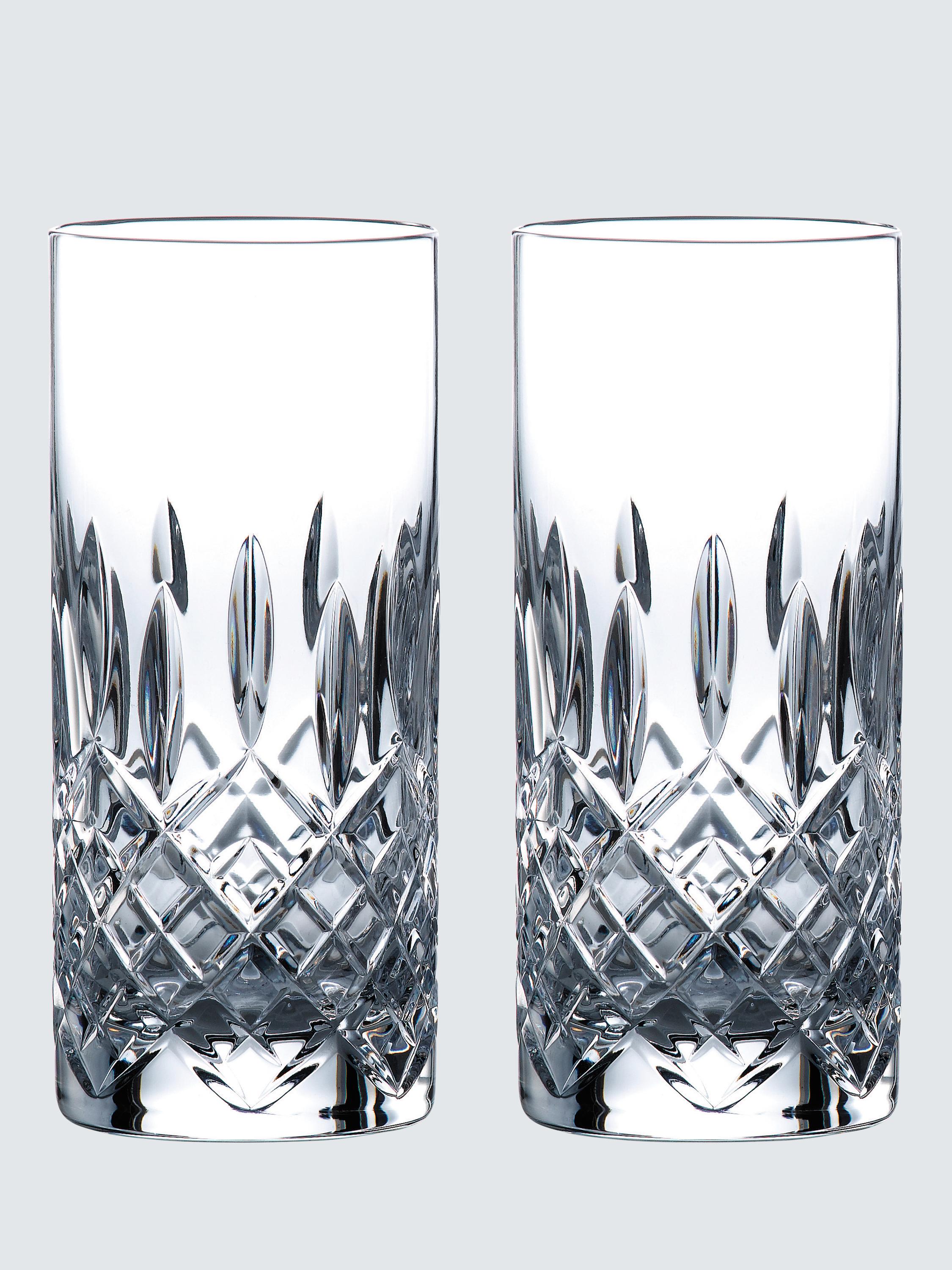 Serve up tall drinks in style with this pair of Ashmere highball glasses. Sleek, sparkling, and great for cocktails or soft drinks, they feature a striking cut-glass pattern, meticulously crafted with Royal Doulton's renowned expertise. Made of crystal glass, they have a comfortable feel in the hand.