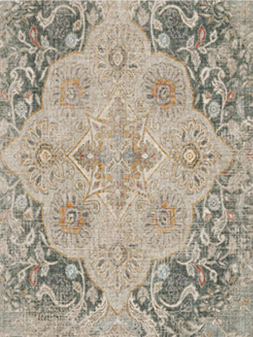 Inspired by classic European rug patterns, the Adeline Rug features a gently distressed diamond medallion with ornate corners and borders. Made from our water-resistant, stain-resistant, and machine-washable low-pile Chenille material.
