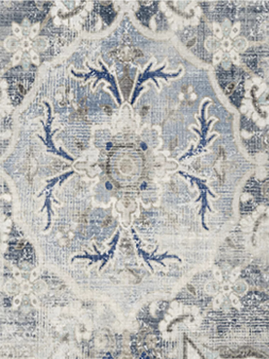 Warm and rustic. Beautiful shades blend together in this rug to create a beautifully rich, distressed design featuring a floral medallion and border. Water-resistant, stain-resistant, and machine-washable.