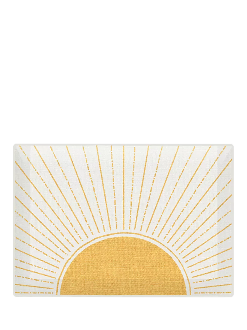 Rise and shine! Brighten your bathroom with this Sunrise Bath Mat, a cheerful, mood-boosting design starring a sun motif and its rays on a soft background. Made from our highly absorbent, quick-drying, machine-washable tufted material.