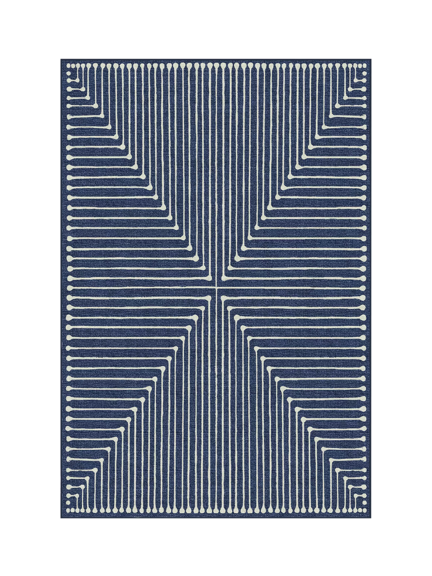Stripes get a chic makeover. Sharp lines form a striped, geometric pattern on this rug. Water-resistant, stain-resistant, and machine-washable.