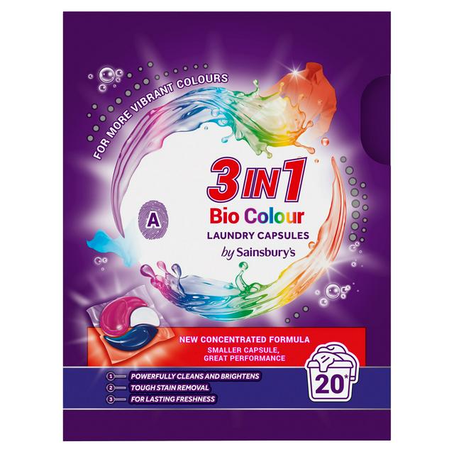 Sainsburys 3 in 1 Bio Colour Laundry Capsules 20 Washes