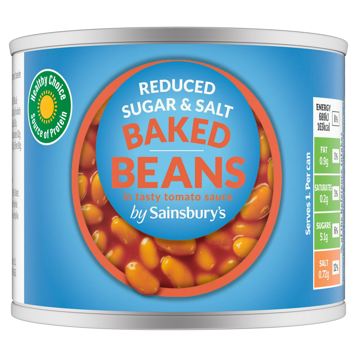 Sainsbury's Baked Beans In Reduced Sugar & Salt, Tomato Sauce 200g