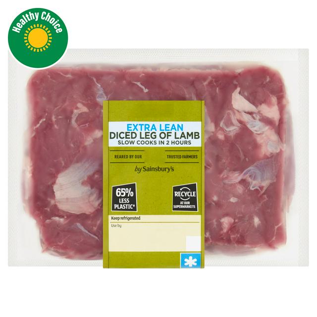 This Sainsburys package contains extra lean diced leg of lamb, sourced from trusted British or New Zealand farms. This quality cut is specifically suitable for slow cooking, achieving tender results over approximately two hours. It offers a lean base for your favourite stew or casserole recipes.
