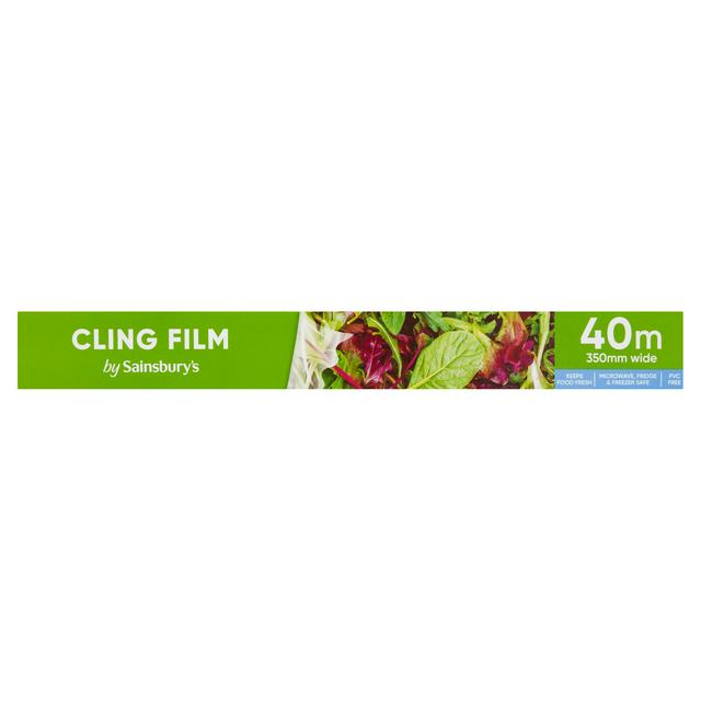 This by Sainsbury's Cling Film comes in a generous 350mm by 40m roll, ideal for frequent household use. It functions perfectly for covering and wrapping all types of foodstuffs, effectively preserving freshness and preventing unwanted odour transfer. This kitchen essential is highly versatile for various storage and heating applications.