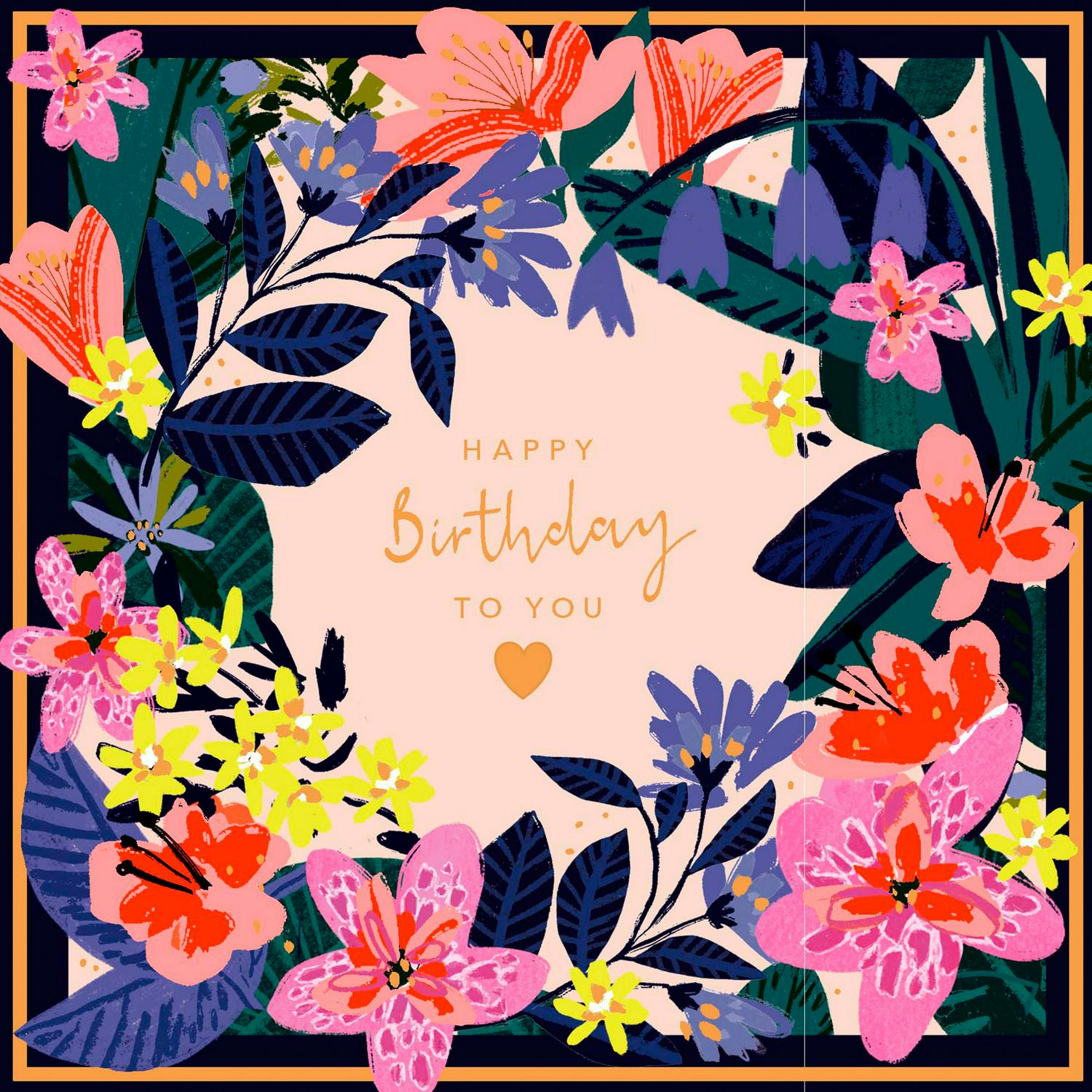 Send warm wishes with this charming Sainsbury's Happy Birthday Card featuring a detailed floral wreath design. This square card is perfectly sized for gifting and presentation. It includes thoughtful sentiments already printed for your convenience.