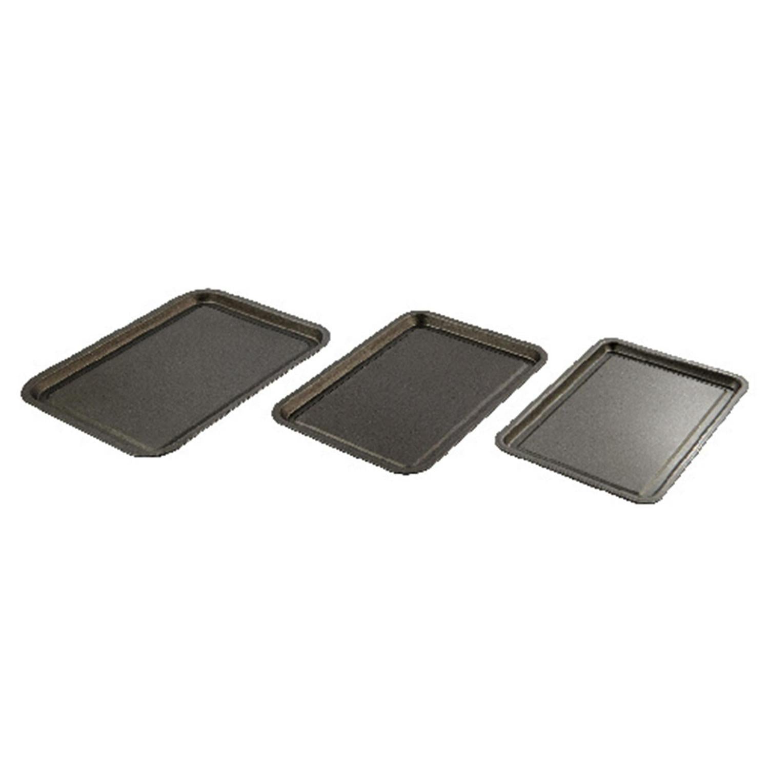 This essential three-piece baking trays set is ideal for creating everything from sweet desserts to savoury meals in your kitchen. Constructed from durable steel, these trays are designed to assist with all your everyday cooking and treating needs.