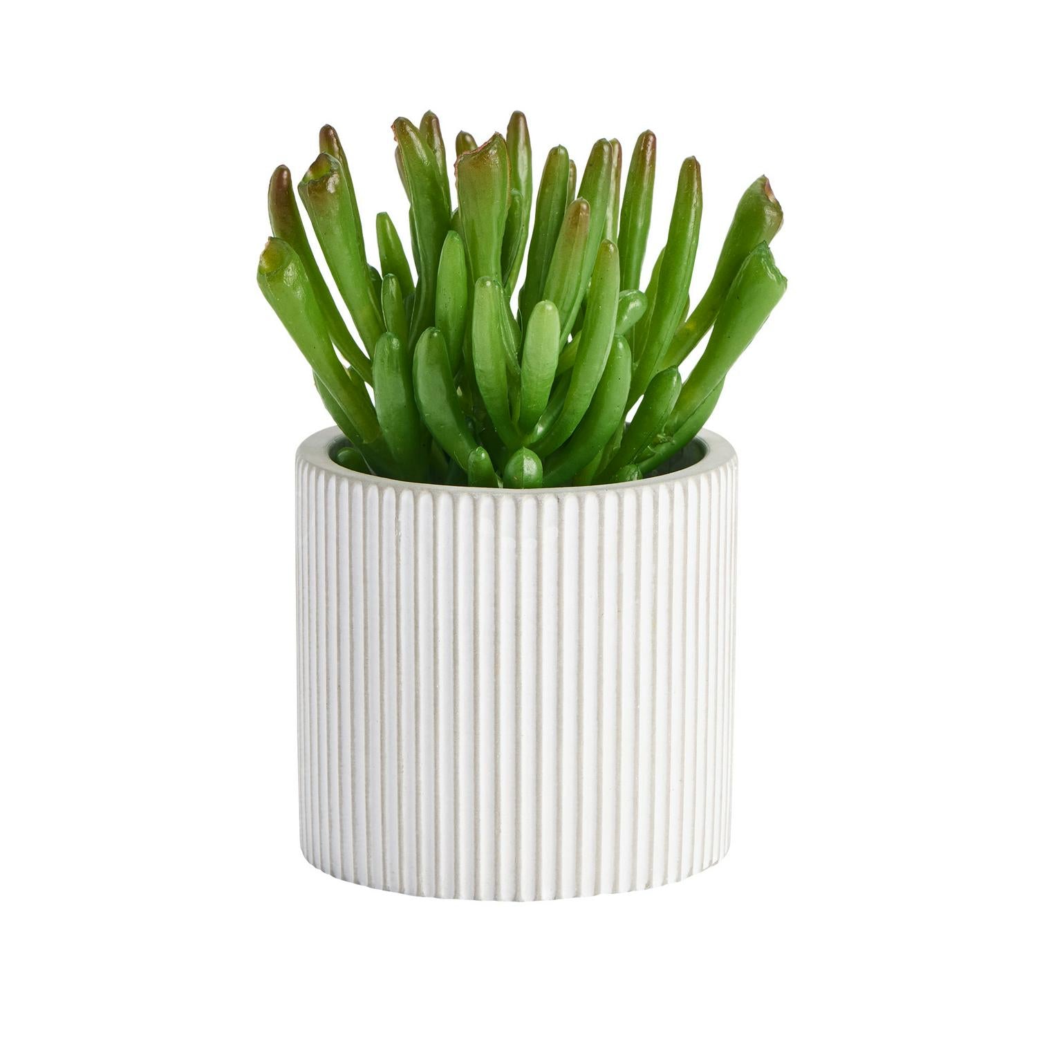 Achieve a natural, vibrant look without the need for maintenance using this artificial crassula succulent. It is designed to bring a consistent touch of green to any indoor space, such as a desk or windowsill. This decorative piece arrives complete, housed in a stylish, stone-style ribbed cement pot.