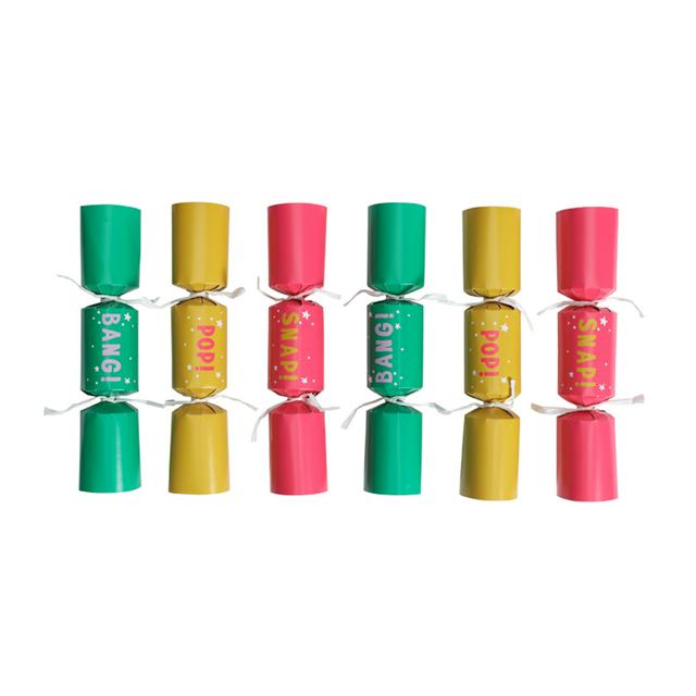 • Contains a set of six brightly coloured mini crackers.