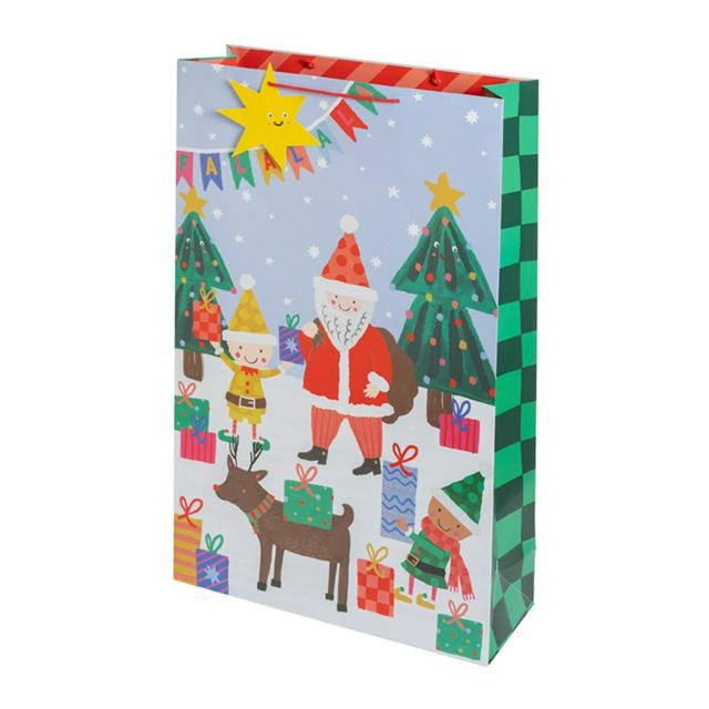 Product details Description Big on presents? You need this giant gift bag. Featuring a fun snowy scene with Santa and his helpers. Comes with a star-shaped label ready for your personal message. • Other Information: This bag is fully recyclable. Before recycling, remove any decorations such as metallic ribbions and... Read More