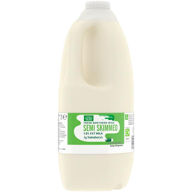This is Sainsbury's pasteurised, homogenised, and standardised semi-skimmed milk, supplied in a convenient 2-litre carton for your household needs. It contains precisely 1.8% fat, making it a medium choice for daily consumption. This fresh dairy product is specifically produced using milk sourced from Northern Ireland.