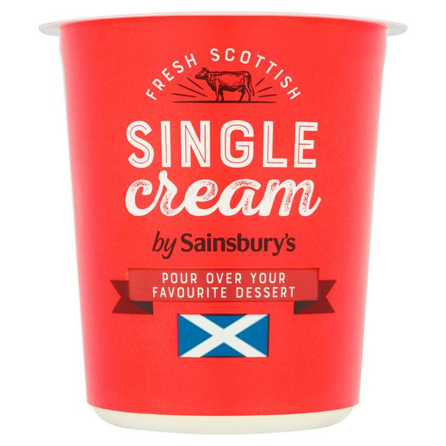 Product details Description Pasteurised Scottish single cream pour over your favourite dessert Quick nutrition guide Per 2 tablespoons (30ml) Typical Values Energy 240kJ 58kcal 3% Fat 5.7g High 8% Saturates 3.7g High 19% Sugars 0.7g Low 1% Salt 0.02g Low <1% of your reference intake Typical values per 100ml: 800kJ... Read More