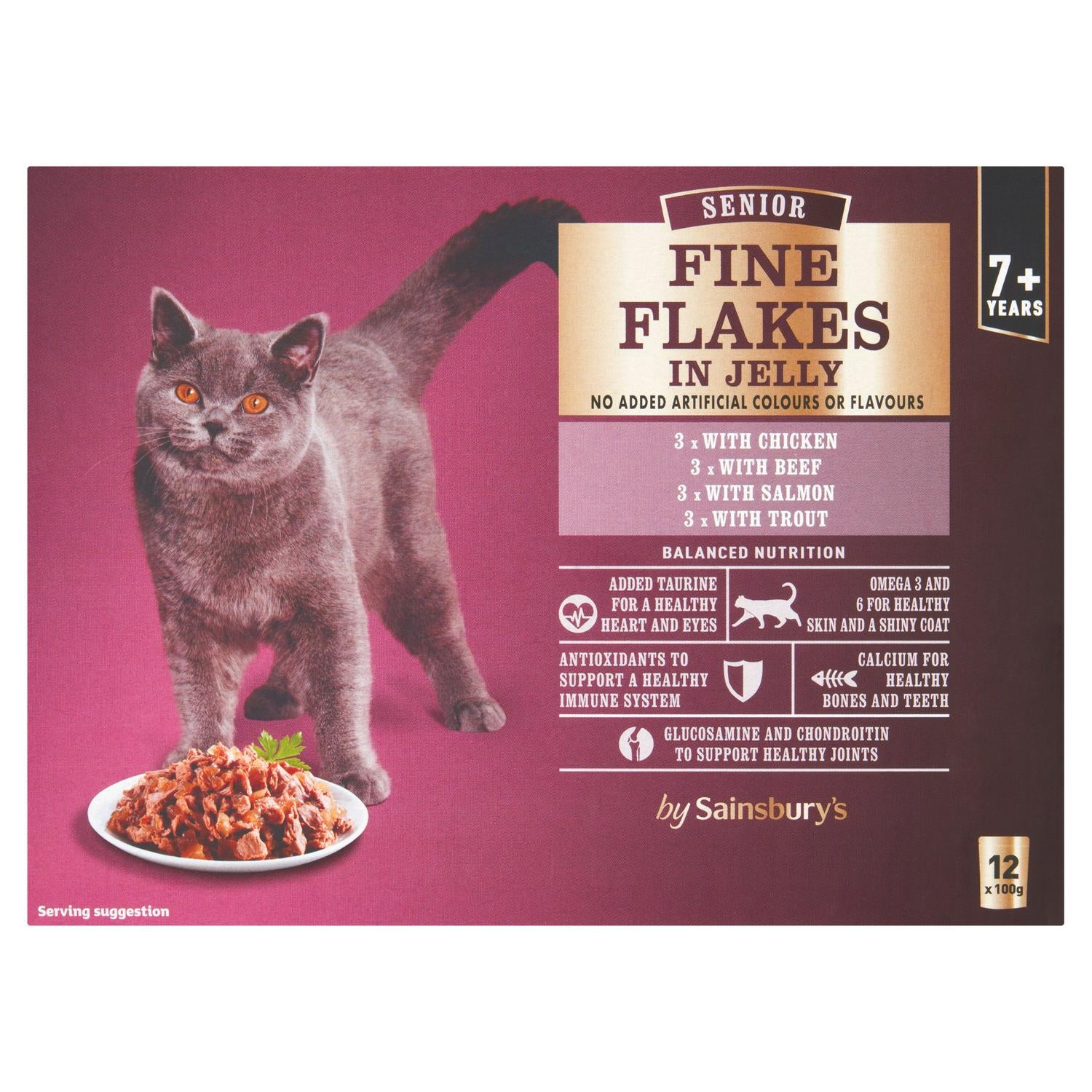 Sainsbury's Senior Fine Flakes Meat & Fish Selection in Jelly Cat Food 7+ Years 12 x 100g
