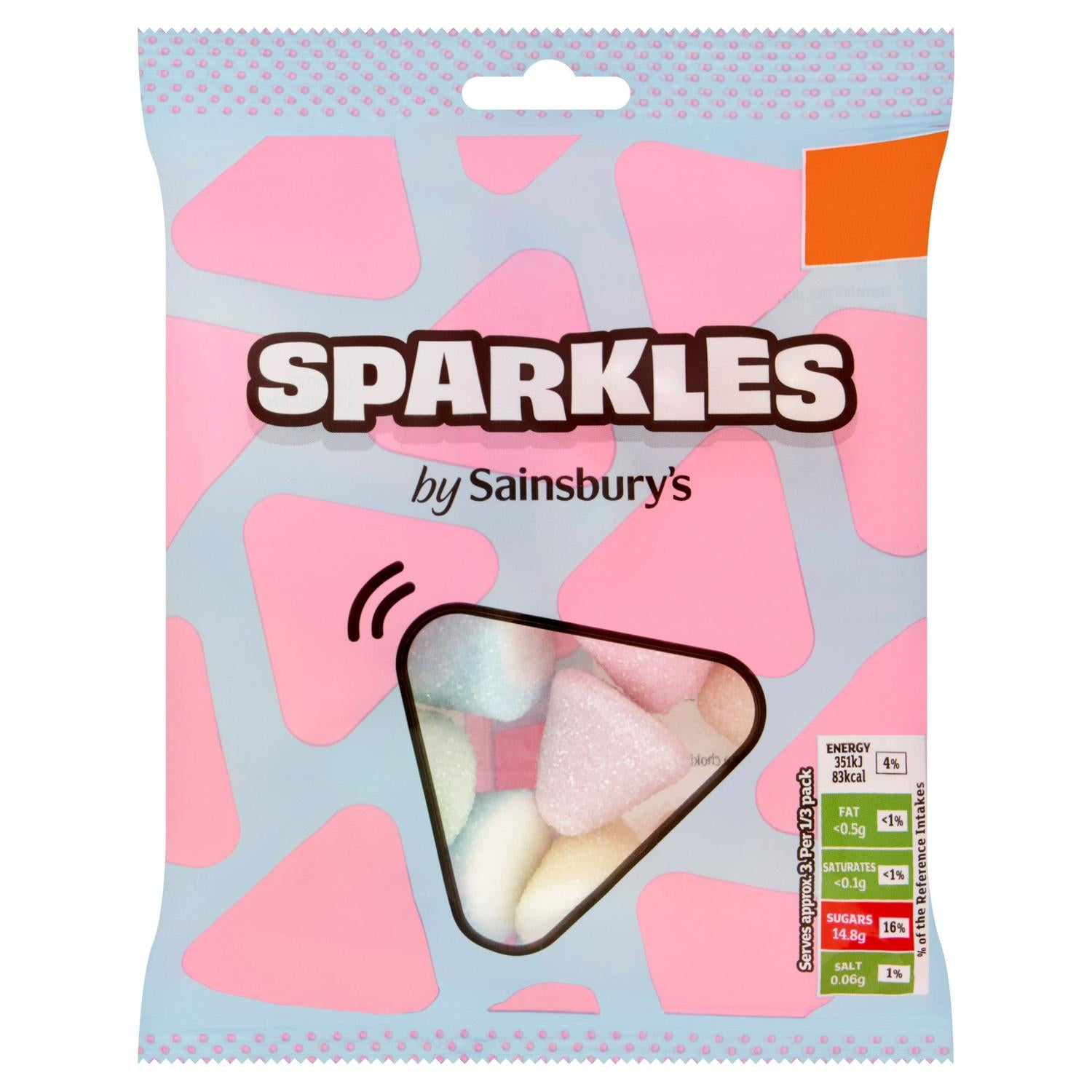 Sainsbury's SPARKLÉS offer a selection of soft, fruit-flavoured confectionery presented in an appealing 70g bag. These treats feature a playful design and a delightful texture, ideal for a sweet indulgence. The packaging provides clear nutritional guidance for mindful enjoyment.