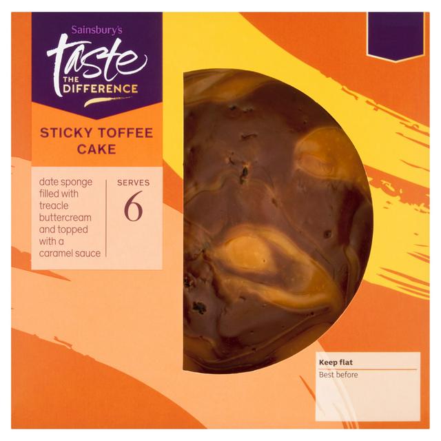This Taste the Difference offering features a rich date sponge base crafted for deep flavour. The sponge is generously filled with a smooth treacle buttercream layer, creating a satisfying texture contrast.