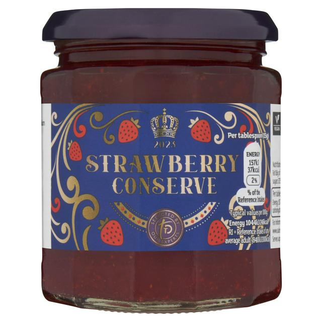 This 340g jar of strawberry conserve provides a rich texture and authentic fruit flavour for your daily enjoyment.