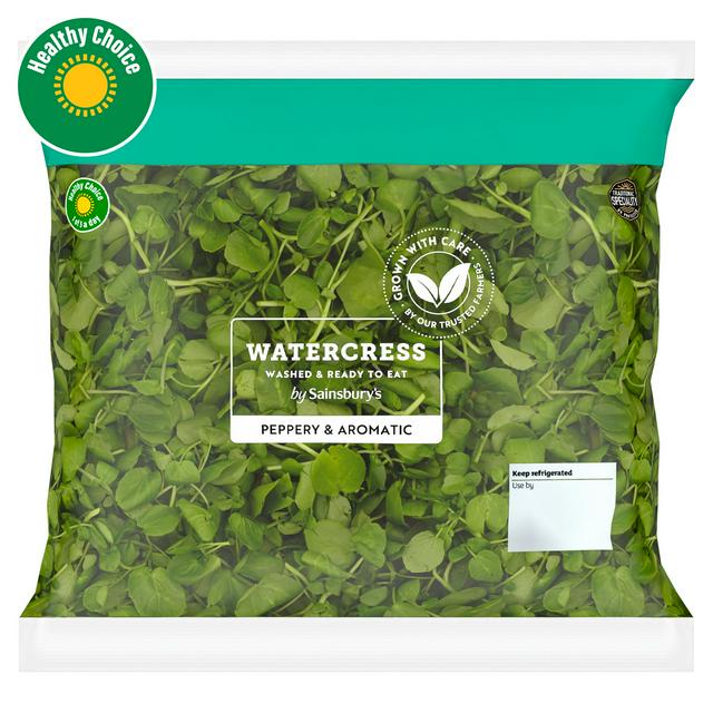 Sainsburys Watercress provides a fresh, ready-to-eat component for your daily meals. This 60g pack contains crisp leaves known for their distinctively peppery and aromatic flavour profile. It is a convenient addition to any salad or sandwich.