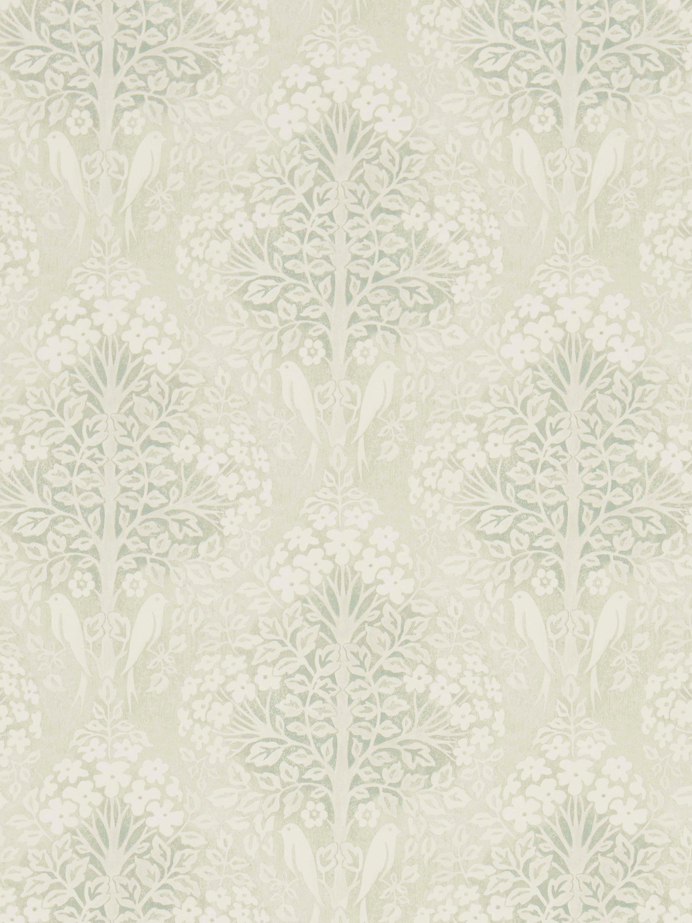 Taken from an archive document designed by Voysey in 1897. In typical Voysey style it has a simple structure (in this case an ogee (two-‘s’ back-to-back)) to support a lively, romantic hedgerow pattern of birds, flowers and foliage.