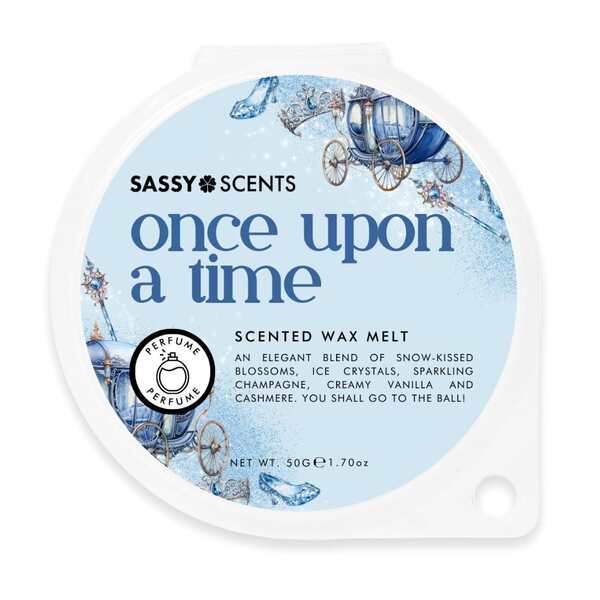 Experience the enchanting aroma of Sassy Scents Once Upon a Time wax melt. This fragrance creates an elegant atmosphere with its complex blend of winter and creamy notes. Designed for use in standard wax melt burners, this 50g pack offers a delightful sensory experience.