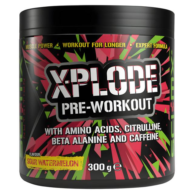 This Sci-MX Xplode formula is a vegan-friendly food supplement designed to support intense training sessions. It features an expert blend of active ingredients, including amino acids, to aid muscle function during exercise. The sour watermelon flavour provides a palatable option for your lifting routine.