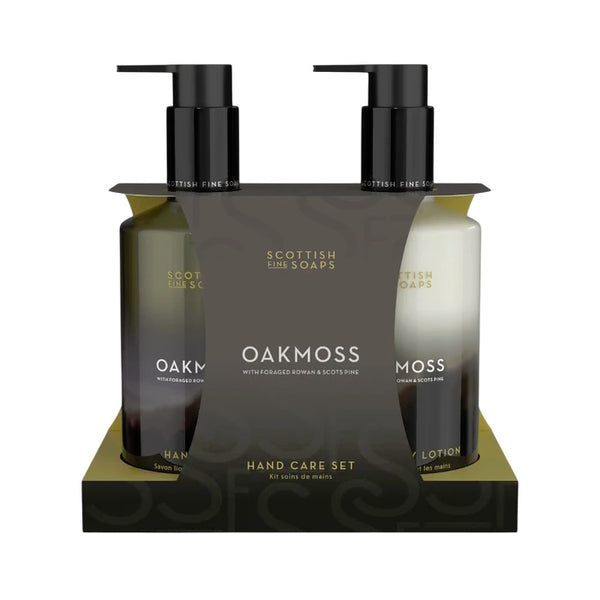 Hand Wash 300ml & Hand & Body Lotion 300ml duo Infused with Scots pine & rowan extract Oakmoss, cedarwood & amber fragrance Soothes, repairs & replenishes skin Vegan-friendly Made in Scotland Bring the calming spirit of the forest to your everyday routine with the Oakmoss Hand Care Set. Infused with natural antioxidants from Scots pine and rowan extract, this nourishing duo is crafted to repair, replenish and protect the skin. Scented with a 100% essential oil blend of oakmoss, cedarwood and amber, the set includes a Hand Wash and Hand & Body Lotion that gently cleanse and hydrate while leaving a warm, earthy fragrance on the skin. Ideal for daily use, it’s a thoughtful gift or soothing addition to any sink-side ritual.