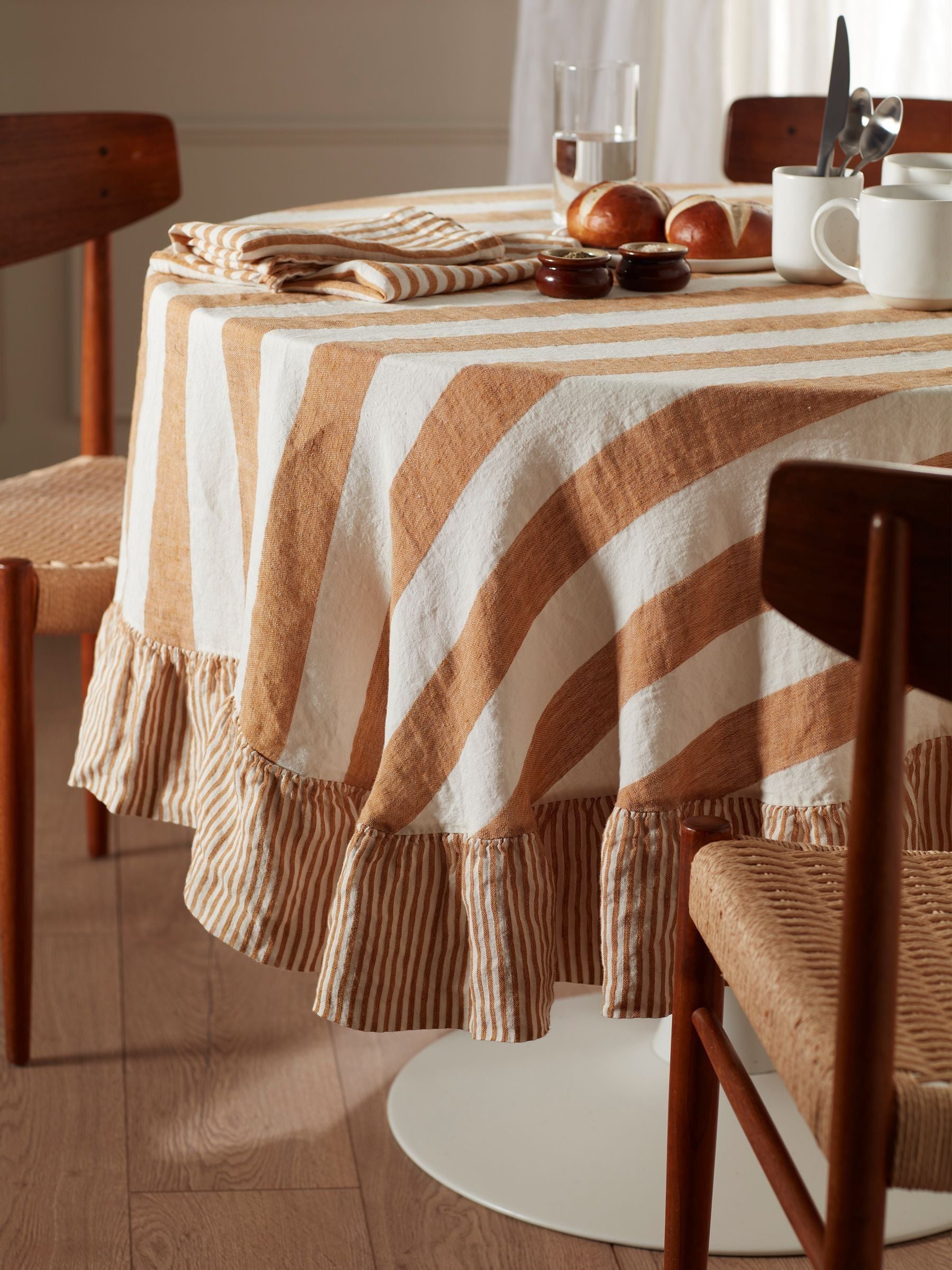 Secret Linen Store Amber Wide Stripe 100% Linen Table Cloth