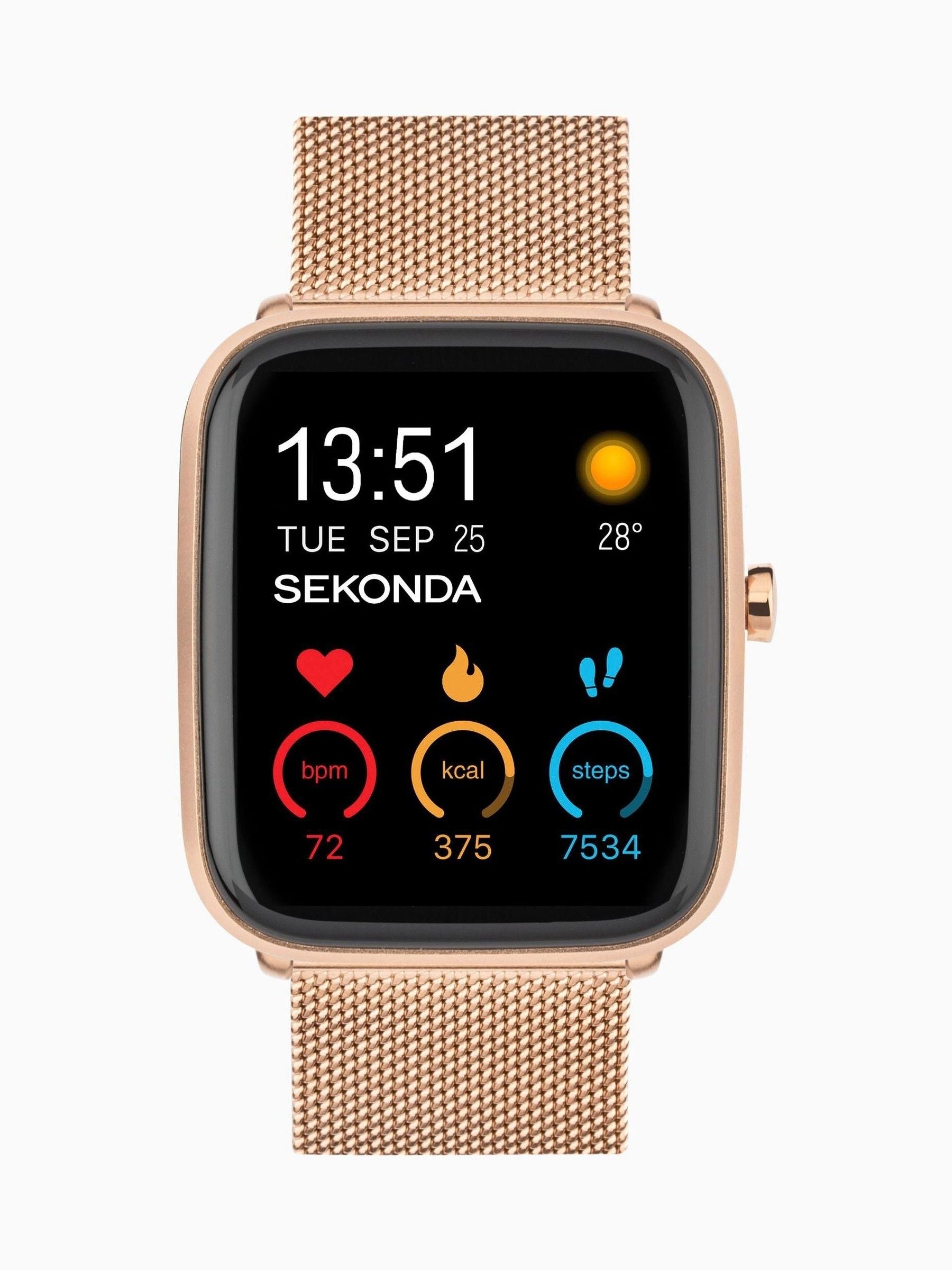 This Sekonda Motion Plus Smart Watch fastens with a rose gold plated stainless steel mesh bracelet with quick release spring bars so you can easily change the strap.