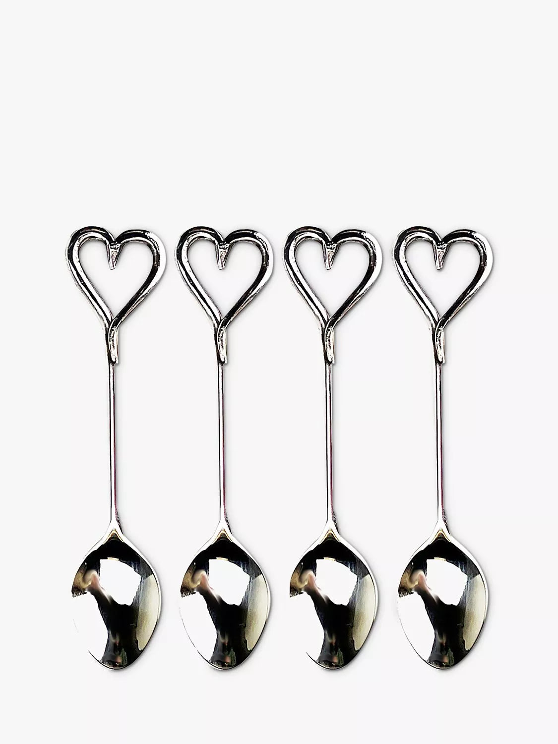 Add a touch of romance to your tea time with this charming set of four heart-shaped spoons. Perfect for sharing sweet treats with loved ones, these elegant spoons make a thoughtful gift for any occasion.