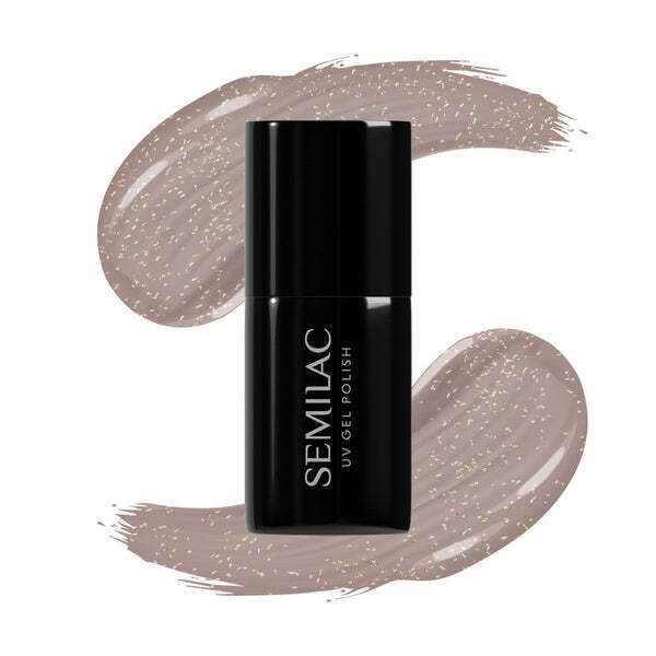 This Semilac polish presents a spicy shade of warm cinnamon brown, ideal for a refined look. Sunken shimmer particles are included to brighten the overall effect subtly. It offers a cool, subdued, and delicate coffee-like tone, making it a perfect solution for every nude manicure enthusiast seeking subtle complexity.