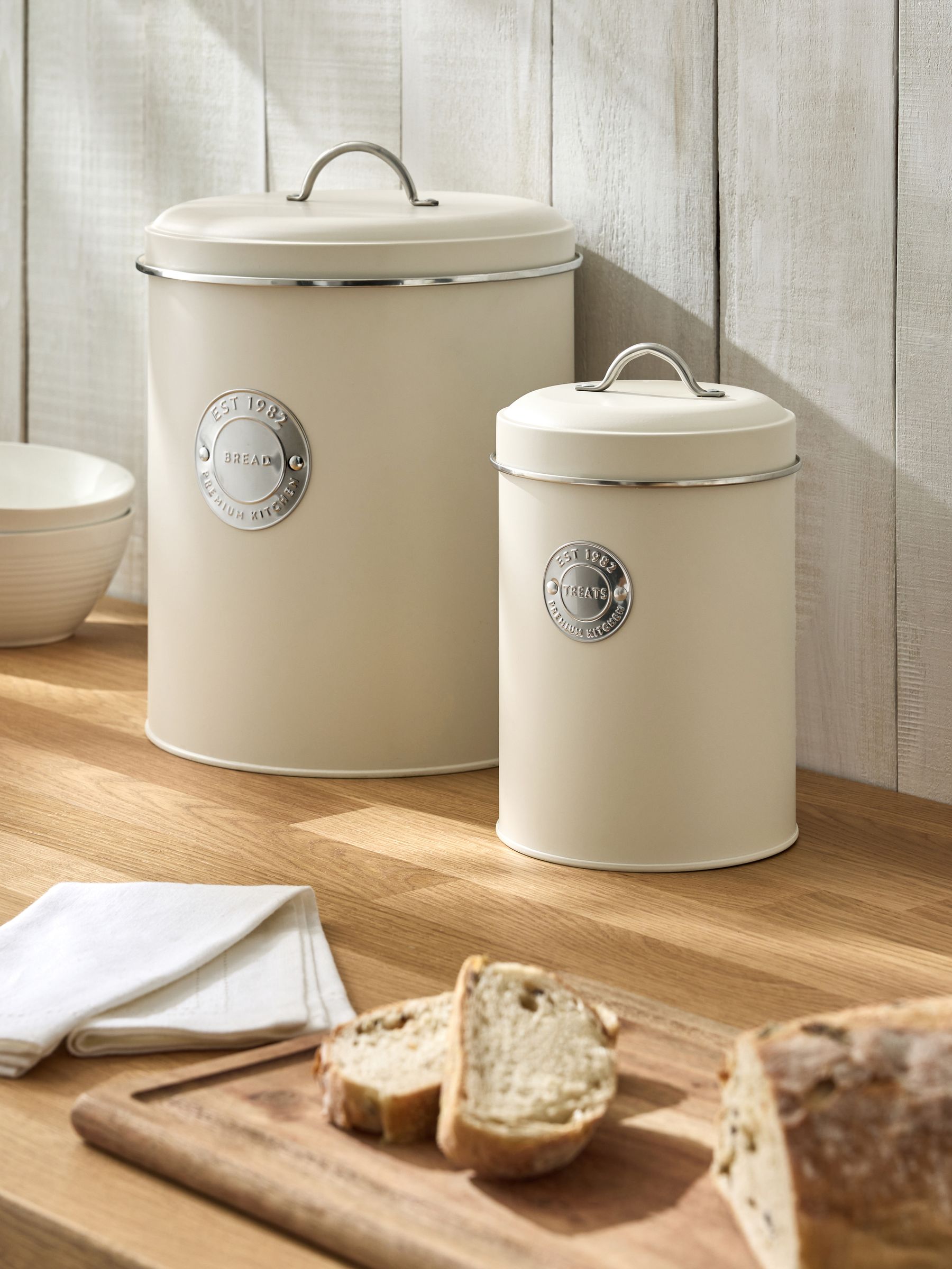 Set of 2 Cream Bread Bin and Treat Storage Jar
