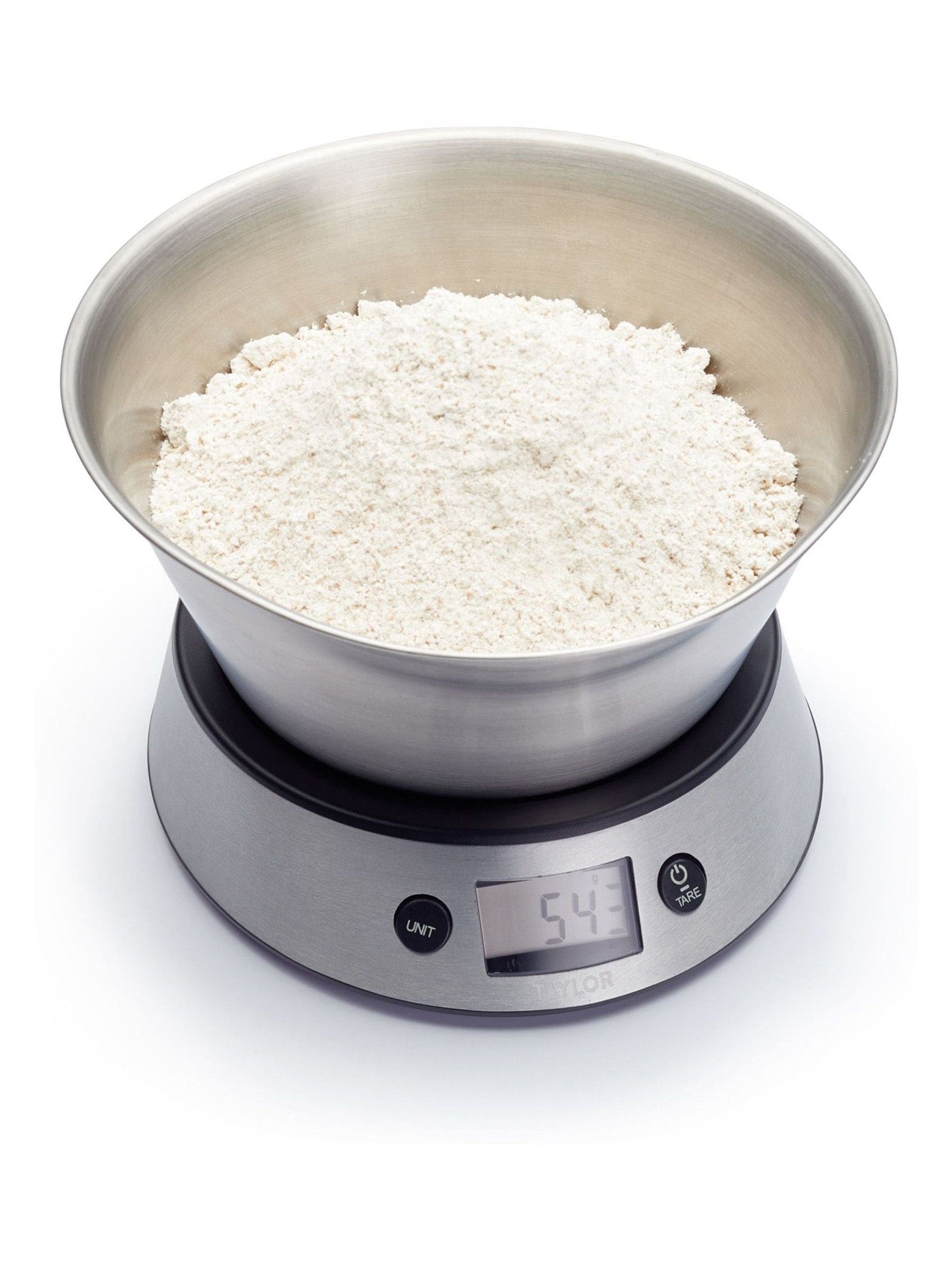 Weigh and mix in the same bowl. These Taylor Pro food scales feature a sleek but practical brushed stainless steel bowl. Place the bowl on the platform to accurately measure your dry and liquid ingredients. The bowl's durable construction also makes it hardy enough for you to whip, fold, blend... Read More