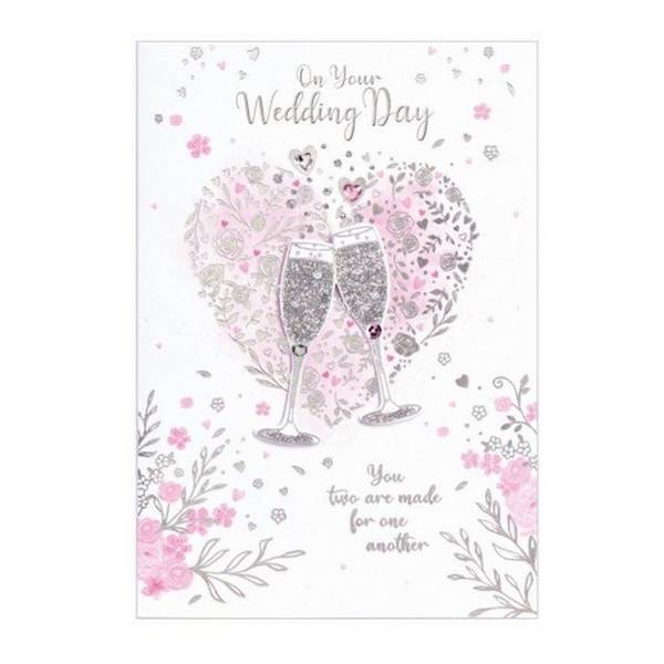 material card design flowers heart printed text wine glass contents 6 envelopes occasion wedding day