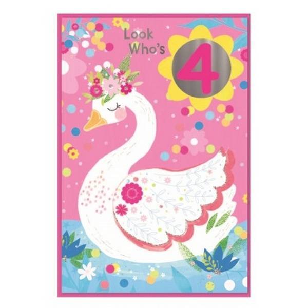 Simon Elvin Swan 4th Birthday Card (Pack of 6)