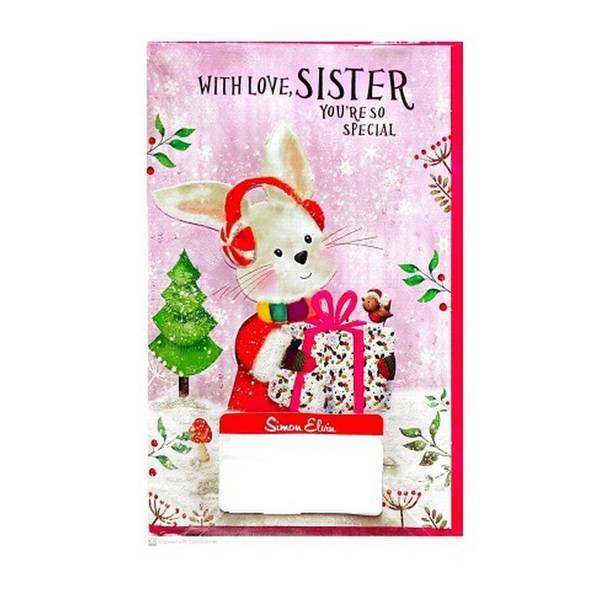 Send festive wishes to your sibling with this lovely pack of six Christmas cards from Simon Elvin. Each card is beautifully designed for your sister on the occasion of Christmas. These seasonal greetings feature charming printed elements, including a cat, rabbit, Christmas tree, and gift design.