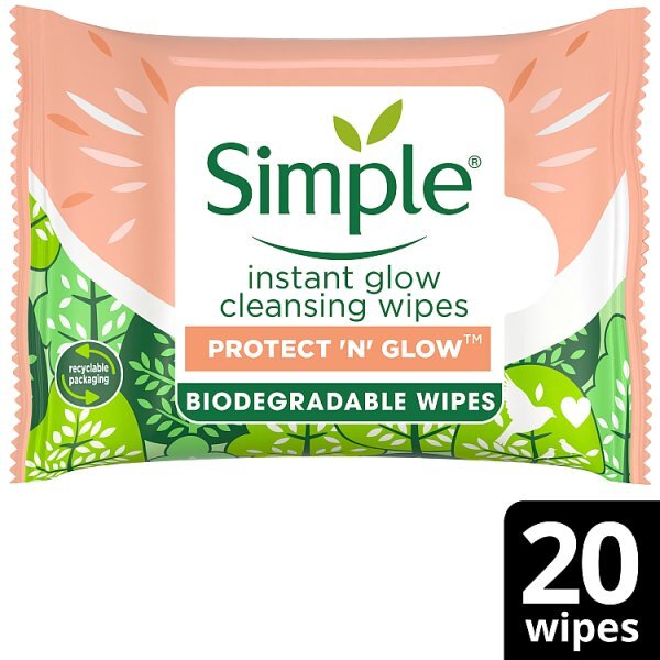 Simple Protect N Glow Biodegradable Wipes Instant Glow X20