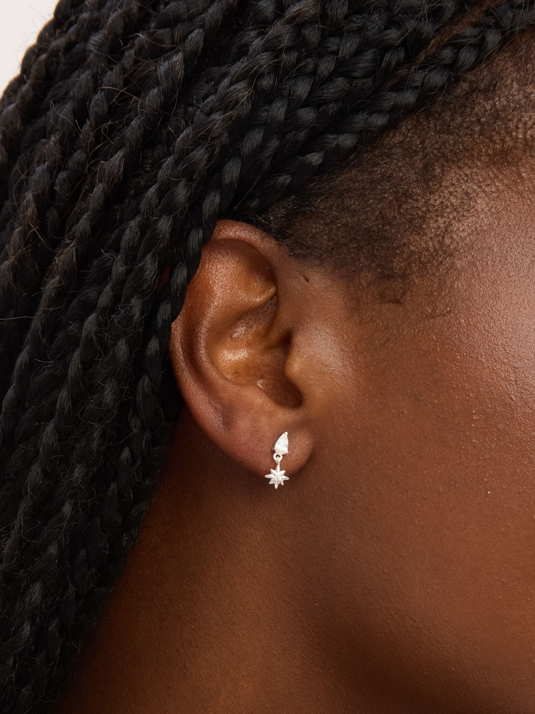 These Cubic Zirconia Celestial Mini Drop Earrings are crafted in Sterling Silver 925 and sparkling with cubic zirconia. These mini drops bring a perfect touch of cosmic elegance to your everyday style. Love a curated ear? Stack with minimalist studs or tiny moon and star earrings to create a story in your ear. Fastening: Post and Bullet Back. Width dimension: 6mm. Length dimension: 12mm. Material: Sterling Silver 925.