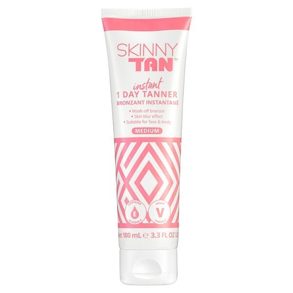 This Skin & Tan product is a hydrating body bronzer offering a medium shade result without long-term commitment. Its formula is designed to provide coverage that lasts throughout the day. It acts as a cosmetic enhancer for the skin's appearance.