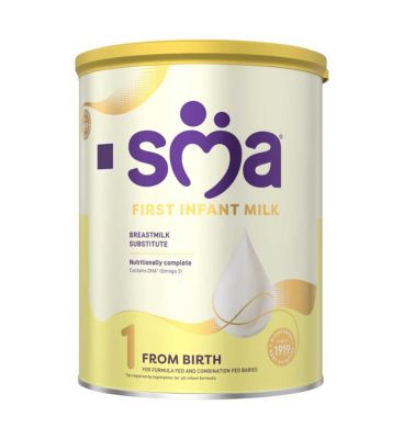 SMA First Infant Baby Milk Powder is a Stage 1 formula suitable as the sole source of nutrition from birth when you are not breastfeeding. SMA Nutrition draws on over 100 years of expertise in infant nutrition development to support your baby's early needs. This powder offers a nutritionally complete breast milk substitute as required by legislation for all infant formula.