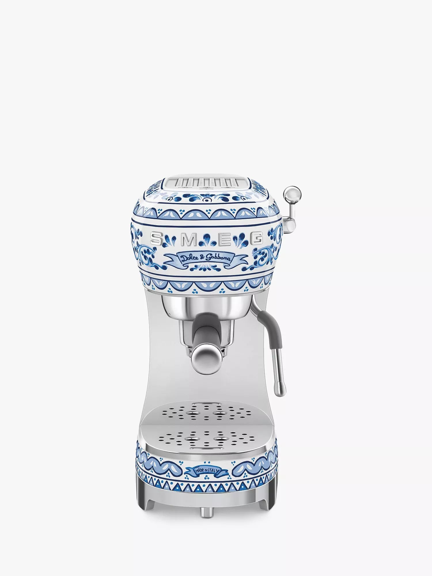 Along with the exquisite Blu Mediterraneo design, Smeg's ECF02 espresso machine will prepare authentic espresso, cappuccino and lattes from the comfort of your own home. Using freshly ground coffee to bring out the inner barista in you, you can prepare coffee at the correct temperature and pressure with a sophisticated Thermoblock heating system which allows for faster switch-on times and precise water temperature control for brewing, steam and hot water.