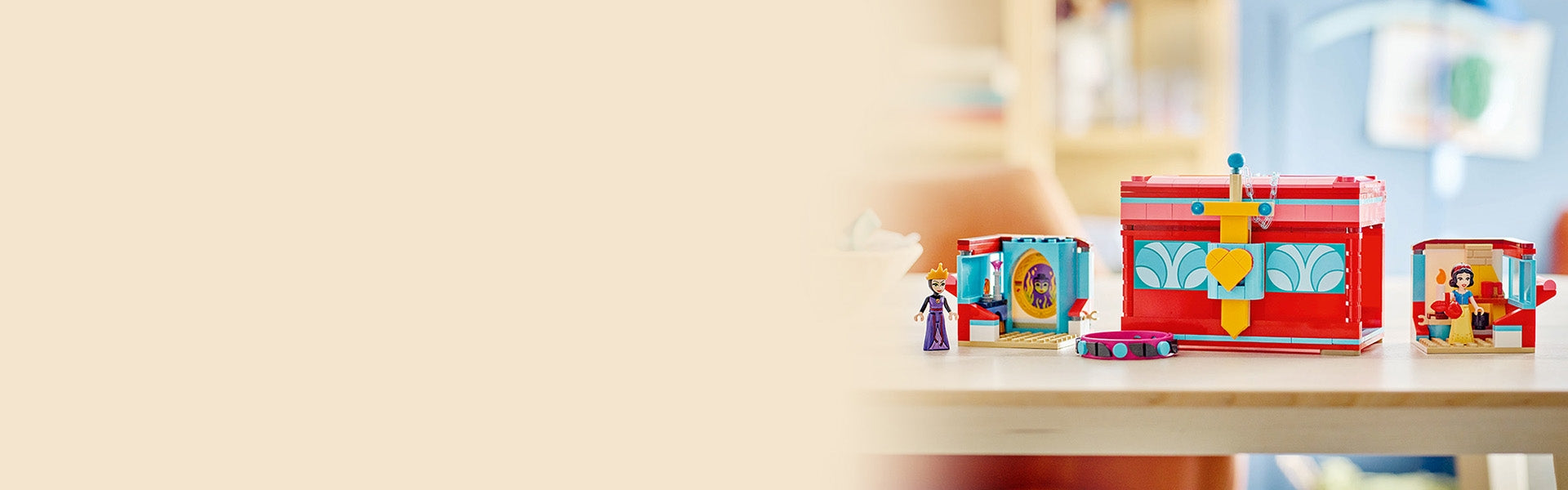 Delight kids and Disney fans aged 6+ with the premium gift of this LEGO® ǀ Disney Snow White’s Jewelry Box (43276) buildable toy playset. It features a box with an opening lid and handles on each side that pull open to reveal hidden rooms, a swordand chain lock, Snow White and the Evil Queen LEGO ǀ Disney mini-doll figures and a colorful bracelet with plenty of decorating elements to design, wear or share.