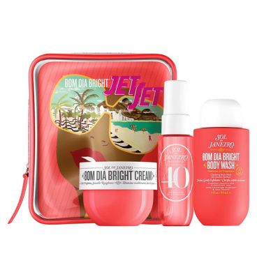 This Sol de Janeiro Bom Dia Jet Set features the award-winning Bom Dia Bright™ Cream for visible skin transformation. This curated collection includes that cream alongside other essential minis, perfectly sized for portability. Achieve brighter, smoother skin texture while on the go with this convenient bundle.