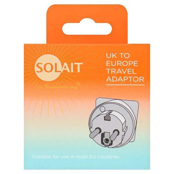 Solait offers this essential travel adaptor for connecting your UK electrical devices while visiting Europe. This compact accessory ensures you can power your essentials safely across many European destinations. It is specifically designed to convert standard UK three-pin plugs into the two-pin configuration required in the EU.