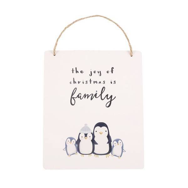 This Something Different item is a festive decoration designed for the holiday season. Crafted from durable MDF, this piece features a charming penguin family design with complementary printed text, making it a delightful addition to your seasonal displays. It is manufactured to be easily displayed, arriving ready to use with a hang tag for immediate placement in your home. The specified dimensions provide a clear visual presence suitable for various hanging locations throughout Christmas. This functional decoration brings seasonal cheer using reliable materials and thoughtful construction.