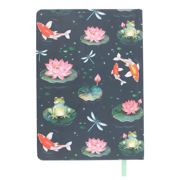 Material: Paper. Length: 21cm. Width: 15cm. Gold Foil Page Edges, Lined Pages, Ribbon Marker. Depth: 1.5cm. Design: Frog, Koi, Lily Pads.