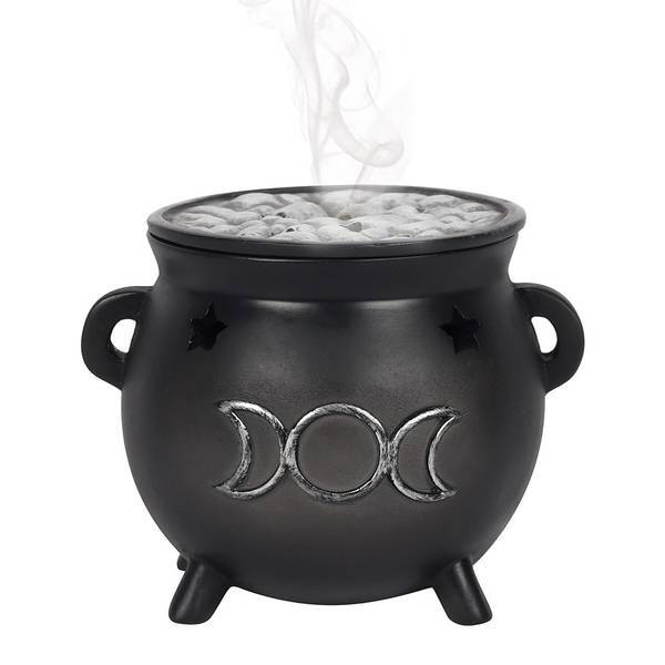 This Something Different Triple Moon Cauldron Incense Burner offers a distinct decorative element for your space. Crafted from durable resin, this piece is designed to safely accommodate your chosen incense, enhancing any spiritual or home setting.