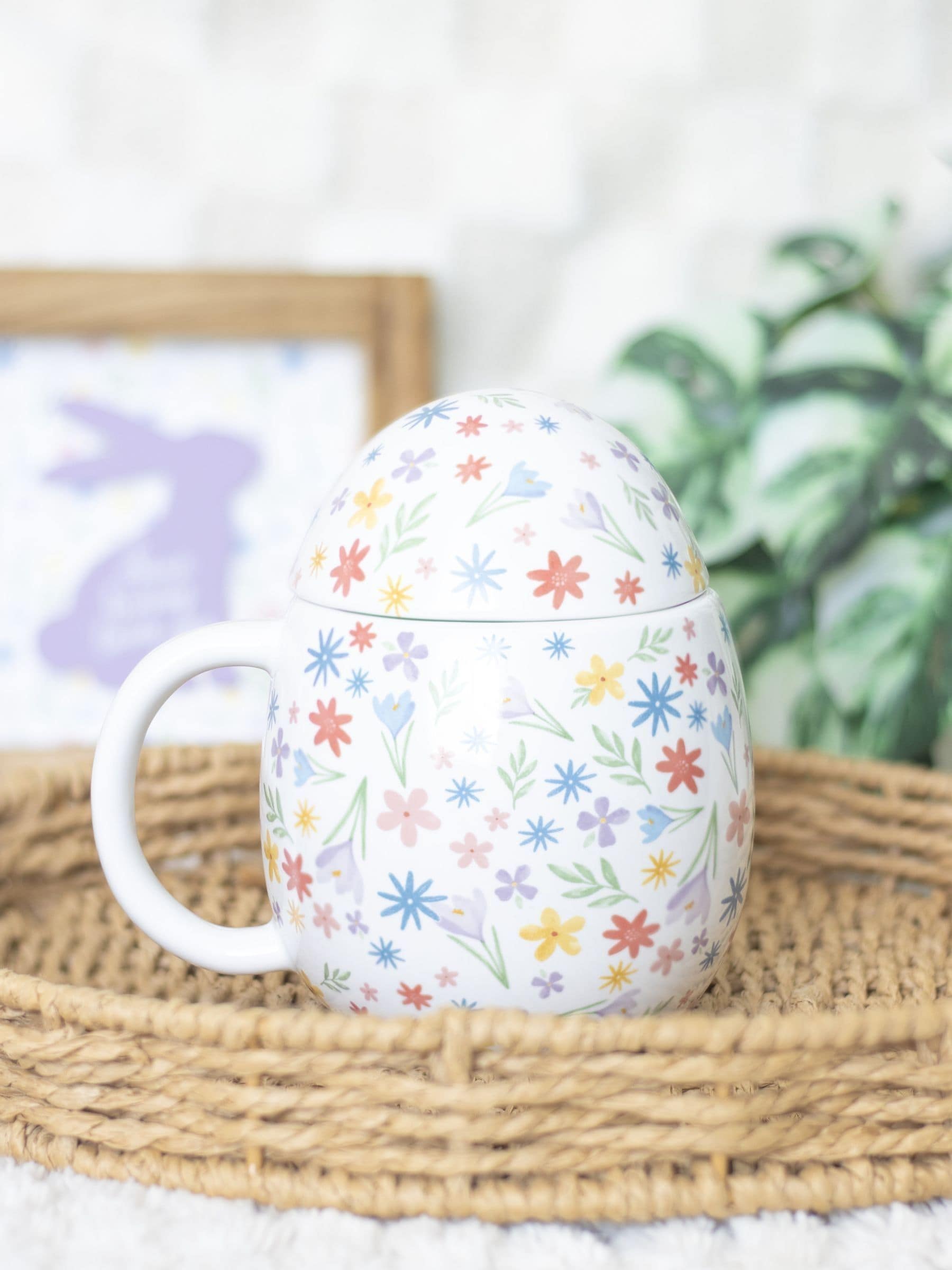 This beautiful ceramic mug is adorned with a delicate array of blooming flowers in soft pastel tones, evoking the fresh beauty of a spring garden. Featuring a unique egg-shaped design, this lidded mug keeps drinks warm, making it a delightful choice for your morning coffee, afternoon tea or cosy hot chocolate. 500ml capacity. Not suitable for microwave. Handwash only.