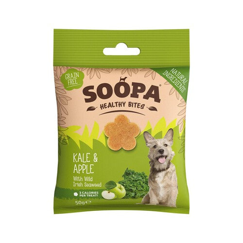 These Soopa Kale Apple snacks are nutritious, bite-sized rewards for your canine companion. They are intentionally low in calories and fat, making them suitable for daily treating.
