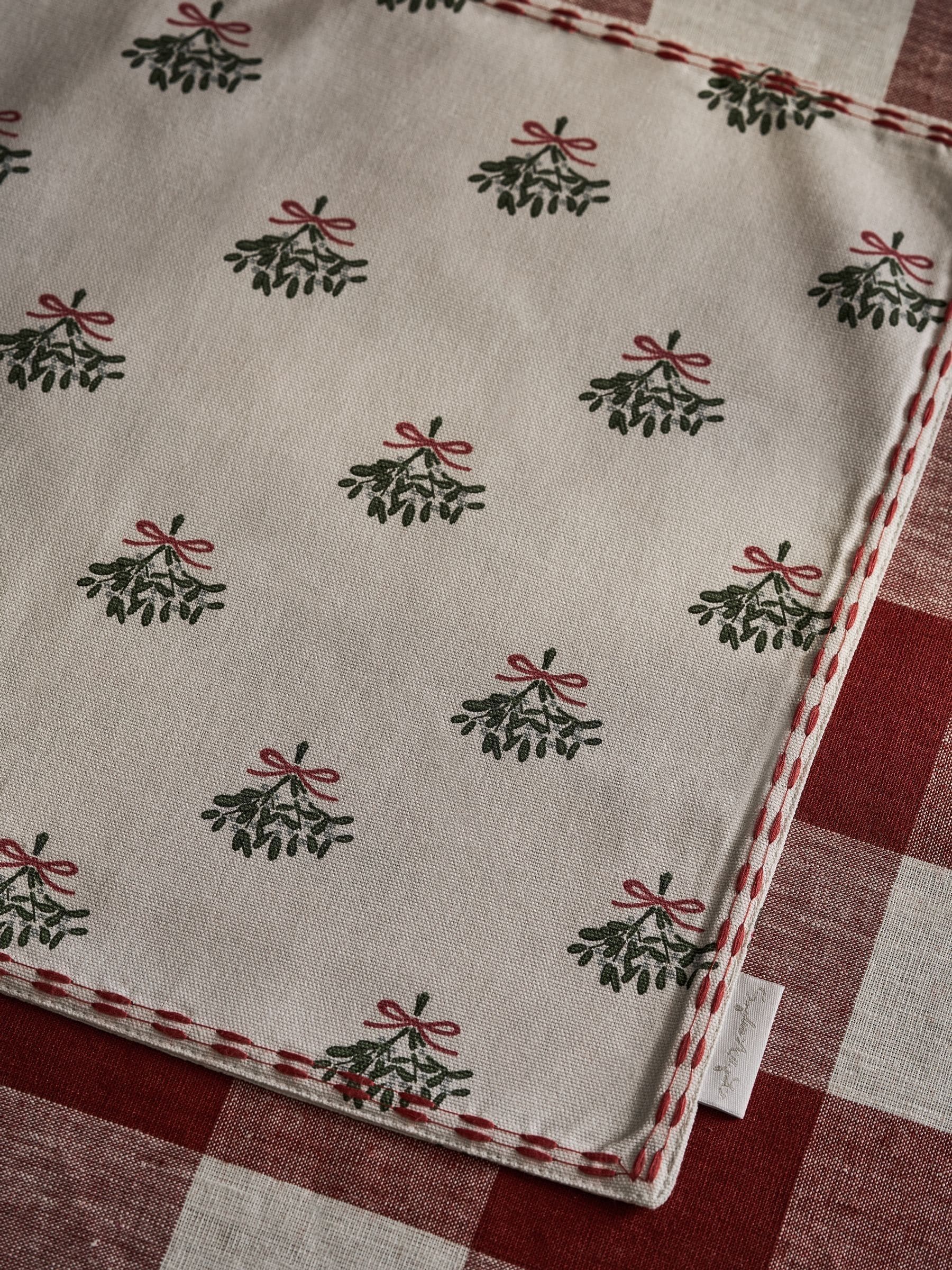 This elegant pair of embroidered placemats makes seasonal dining effortlessly stylish. Featuring intricate mistletoe sprigs and a subtle red ribbon, the design brings charm and sophistication to the festive table – perfect for creating a cosy, classic Christmas setting. Set of 2 H 34 x W 44cm Made from cotton Pattern may vary slightly Coordinating items are available in the Mistletoe collection Size: ONE.