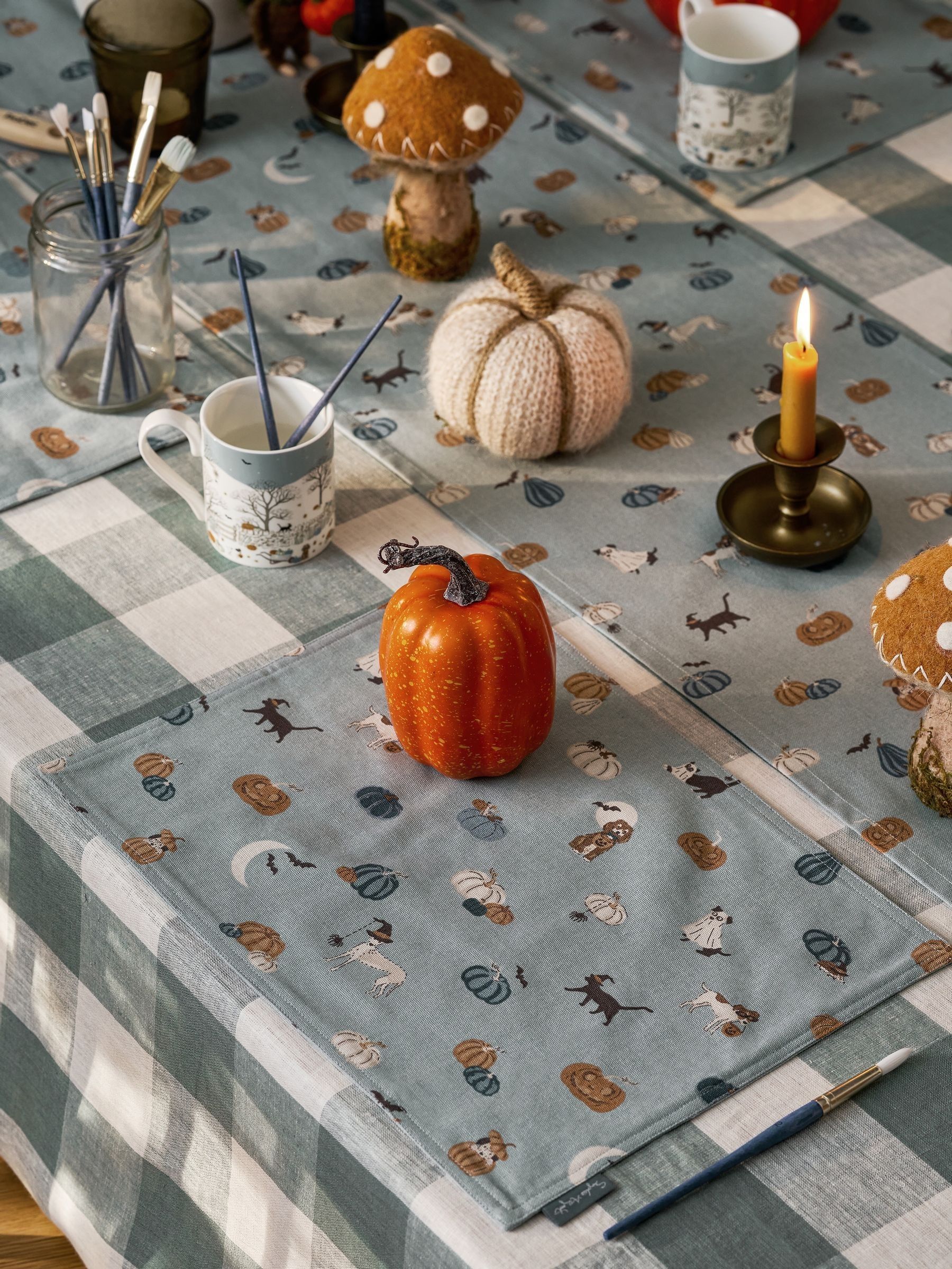 Bring a splash of autumn to the table with this set of two washable placemats, decorated with playful Halloween cats and dogs. Made from 100% cotton, these placemats can be machine-washed, making them ideal for busy households and Halloween entertaining. Set of 2 H 30 x W 40cm Made from 100% cotton Washable Pattern may vary slightly Coordinating items are available in the Paws & Pumpkins collection Size: ONE.